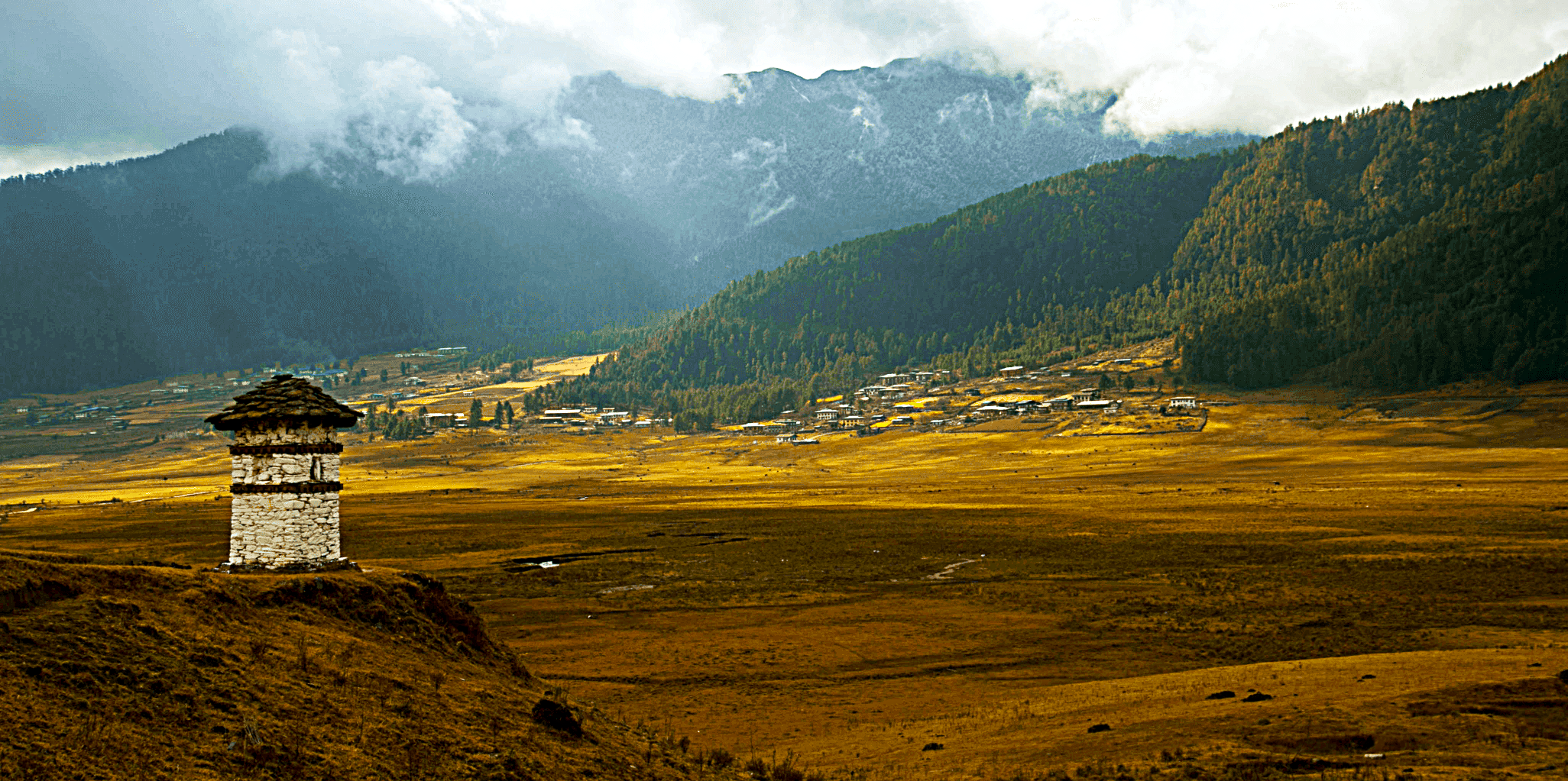After lunch, continue your journey to the stunning Phobjikha Valley, passing through the scenic region of Wangdue. Phobjikha is a part of the magnificent Jigme Singye Wangchuck National Park, formerly known as Black Mountains National Park, and is one of Bhutan's most treasured nature sanctuaries. Each winter, the valley becomes home to around 300 rare and endangered black-necked cranes. The surrounding hills and mountains are inhabited by nomadic shepherds and yak-herders, adding to the area’s remote and untouched charm.